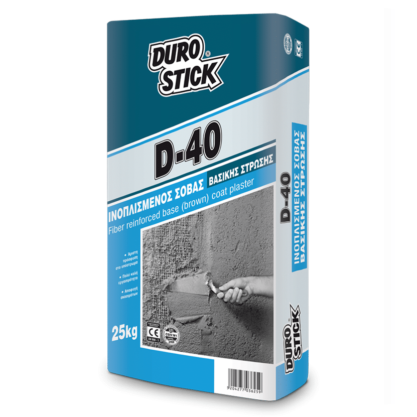 Έτοιμος σοβάς βασικής στρώσης, χωρίς ασβέστη, κατάλληλος για σοβάτισμα και ‘πεταχτό’, μόνο με την προσθήκη νερού. Σταθερής ποιότητας, παρέχει υψηλή αντοχή (διπλάσια σε σχέση με τους παραδοσιακούς σοβάδες). Εφαρμόζεται σε τοιχοποιίες από τούβλα, τσιμεντόλιθους και σκυρόδεμα. Δημιουργεί κατάλληλο υπόστρωμα για την εφαρμογή τελικής στρώσης σοβά, όπως είναι ο D-41, οι έγχρωμοι υδαταπωθητικοί σοβάδες HYDROSTOP DS-74 και DS-75, καθώς και ο εύκαμπτος σοβάς HYDROSTOP PLASTER ELASTIC της DUROSTICK. Εφαρμόζεται με μηχανή εκτόξευσης σοβά, μυστρί και φραγκόφτυαρο. Κατατάσσεται στην κατηγορία GP: CSIV/W1 κατά ΕΝ 998-1
